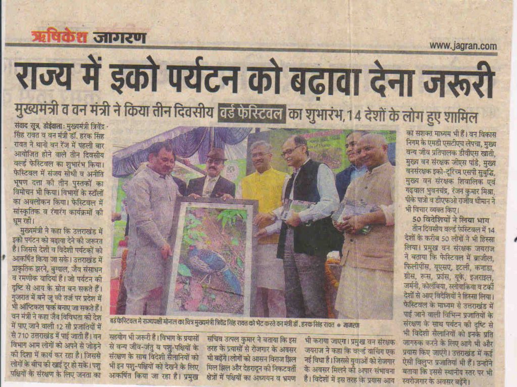 5th Spring Uttarakhand Bird Festival started on 9th of March and now finished on 11th March 2018. State Chief Minister Honurable Shree Trivendra Singh Rawat ji inaugurated the Bird Festival officially at Thano, a town near state capital Dehradun at the foothills of Himalaya. The purpose of this festival to promote bird tourism, eco tourism in the state for local community benefits. The new checklist of birds for destination Thano now cross 200 numbers. 22 more new species found this year at Thano, which is good achievement for locals to promote it as birding destination. People from around the world (50 foreigners) from Brazil, Philippines, USA, Italy, Canada, Greece, Russia, France, UK, Israel, Germany, Columbia, Slovakia, and Turkey about 14 countries also participated in this event and help us to make it global.